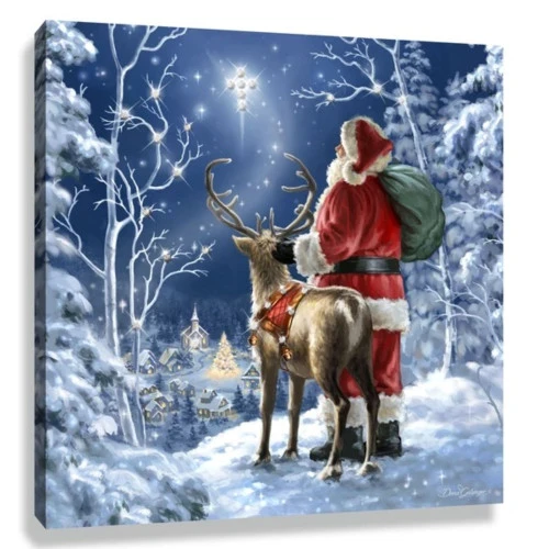 - Blue And Red Starry Night Santa Framed Wall Decor