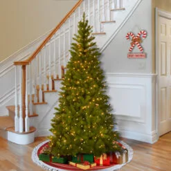 Christmas Central 7.5 Ft. Carolina Pine Slim Tree With Clear Lights