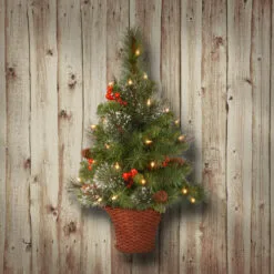 Christmas Central 3′ Pre-Lit Crestwood Spruce Artificial Christmas Half Tree, White LED Lights