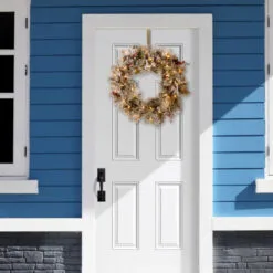 Christmas Central Pre-Lit Wintry Pine Artificial Christmas Wreath, 24-Inch, Clear Lights