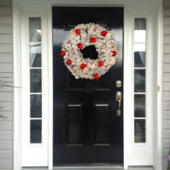 Christmas Central Pre-Lit Snowy Sheffield Spruce Artificial Christmas Wreath, 30-Inch, LED Lights