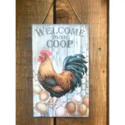 Christmas Central Brown And Gray Rooster Rectangular Wall Sign With Rope Hanger 10″ X 6″