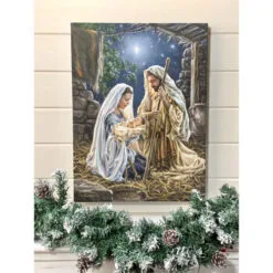 Christmas Central 24″ X 18″ Beige And White Holy Family Back-lit Wall Art With Remote Control
